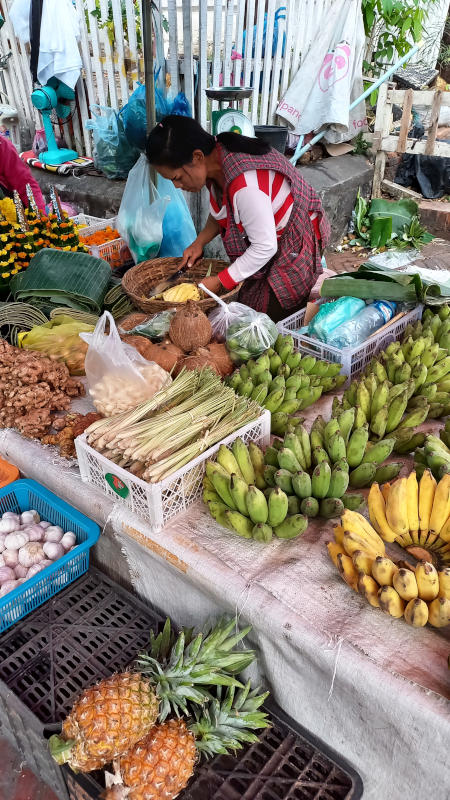 Wir haben den 8 Uhr Bus gechartert. Mit dem Wissen um das Sparflammenfrühstück in unserm Hotel, haben wir uns heute direkt auf den Markt gemacht und die obligatorische frische Ananas als Nahrungsergänzung zum Hotelfrühstück geholt. Kurz vor Acht – noch schnell die gewaschene Wäsche abholen und dann warten – warten – warten.